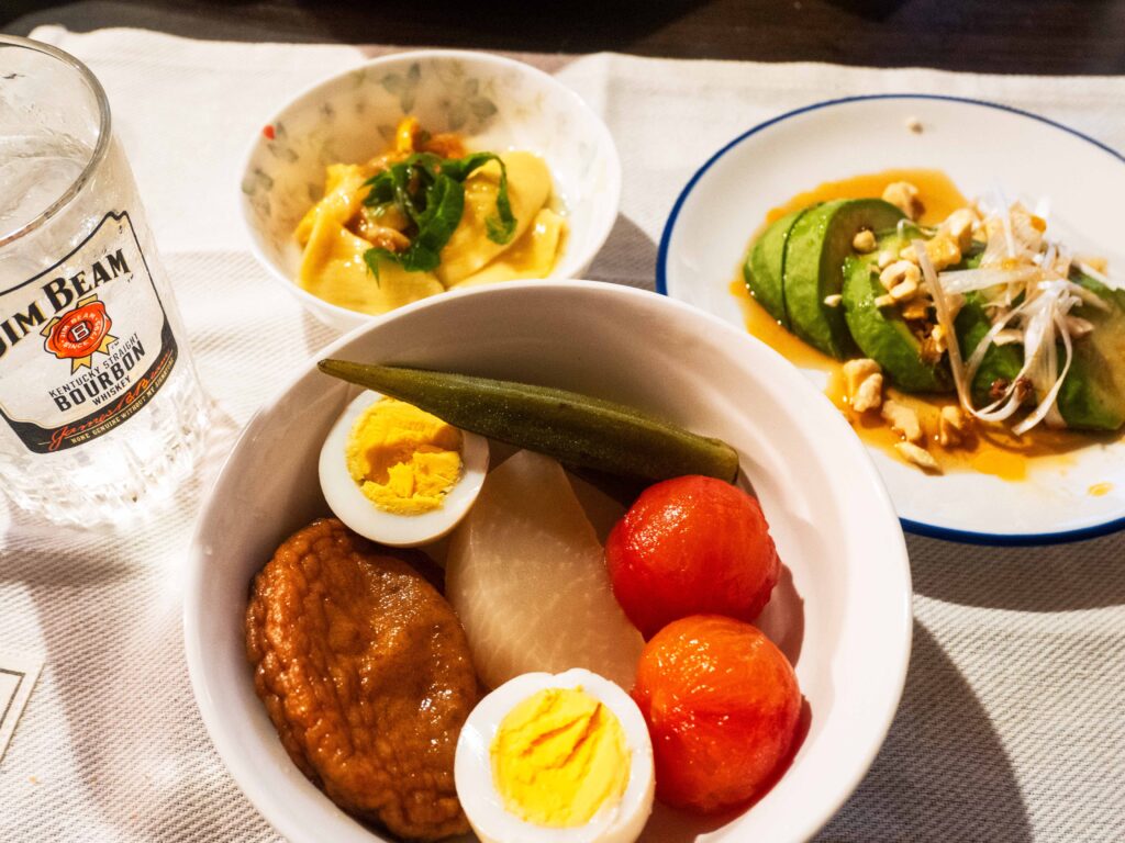 冷やしおでん。夏でも食べたいおでん。いつものようにネットを徘徊して美味しそうなレシピを探した。検索しながら、アボカドの美味しそうなレシピも見て、これは食べる直前に作った。