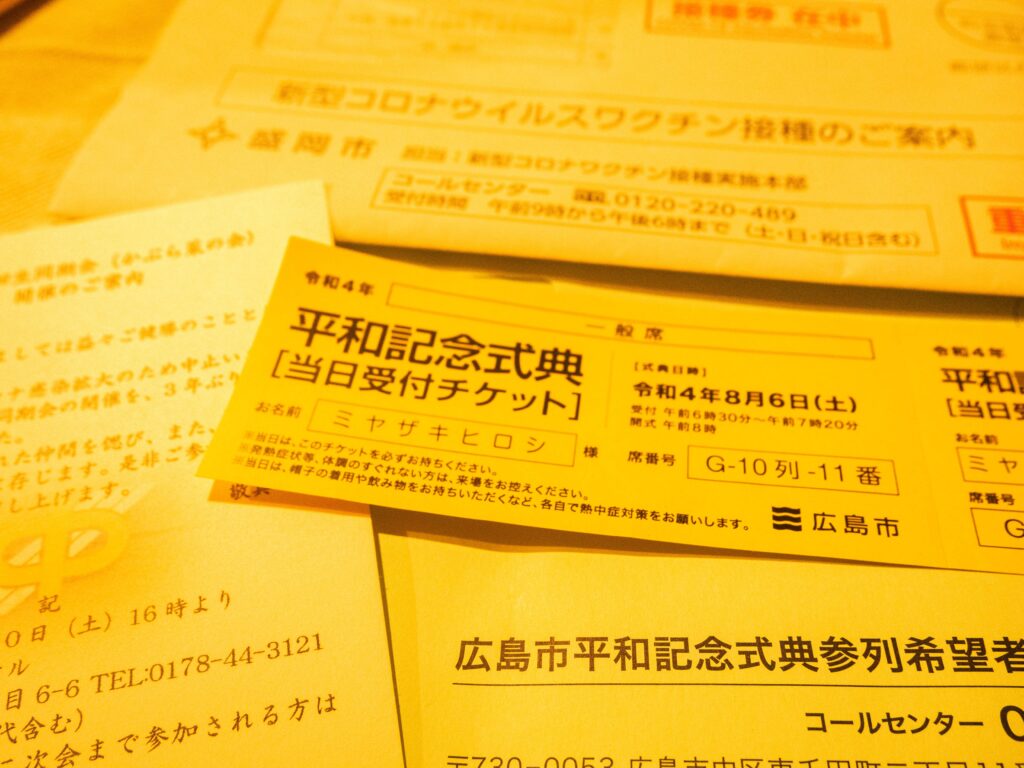 そして、平和式典一般参加者のチケットが来た。抽選があたった。