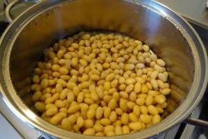 納豆、目玉焼き、昨日作った蒸し大豆にもずく酢をかけて。ご飯は玄米、味噌汁は玉ねぎと人参。ラジコ聞きながらのんびり朝食。