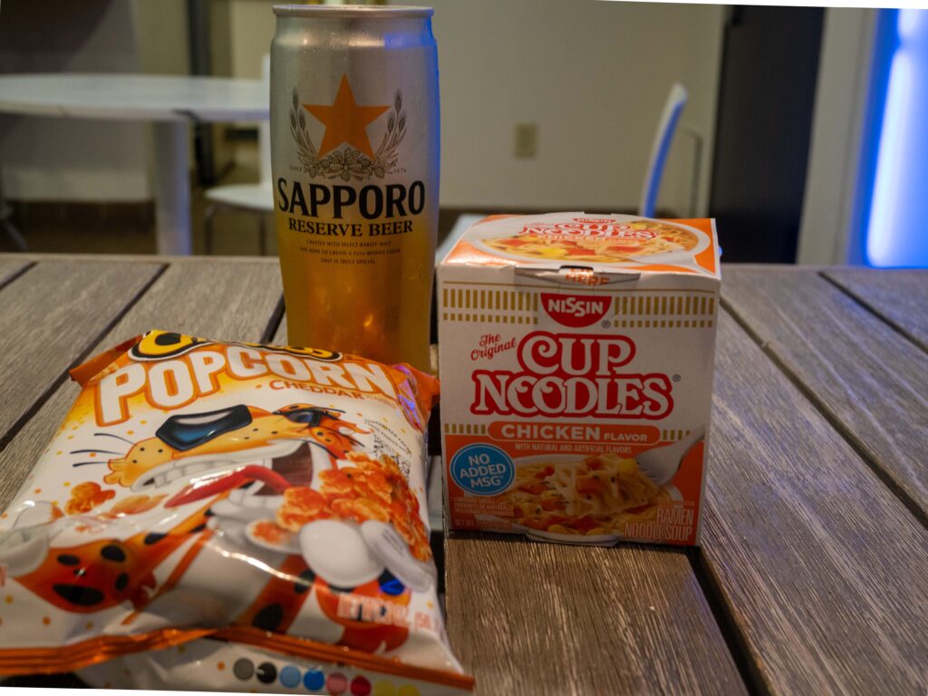 途中のミニスーパーでビール、カップラーメン(中華リベンジ)、チップスを買って帰る。