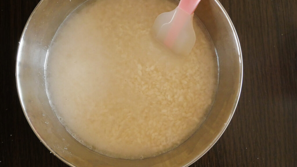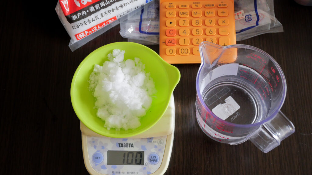 麹が300gだったので、塩およそ3分のⅠ、100g。水は同量の300CCで仕込む。