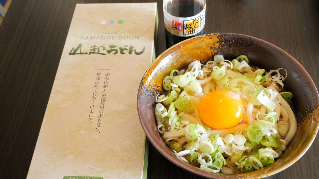 半生の麺で、賞味期限がとっくに過ぎていたが、いい。大好きな釜玉で。