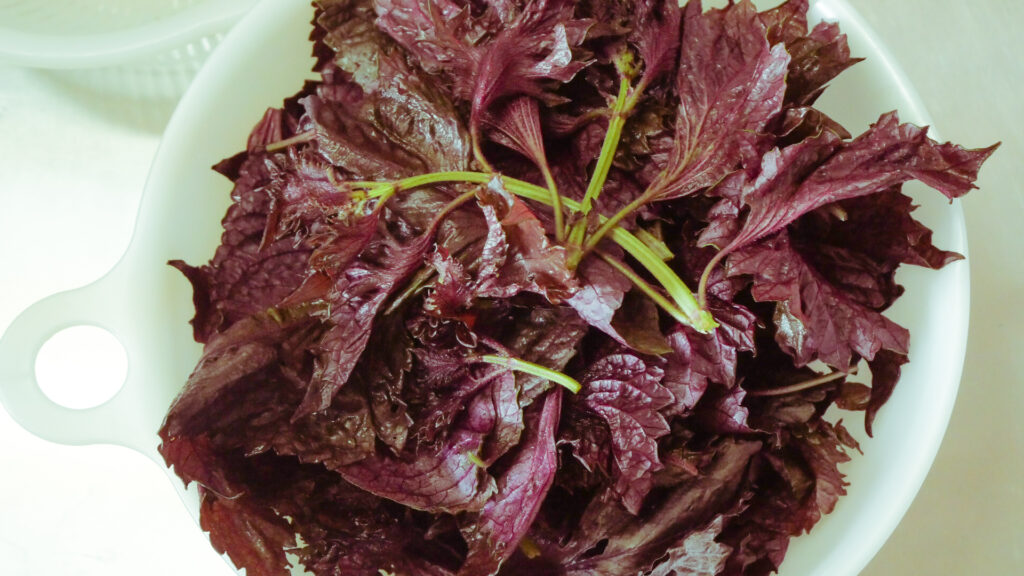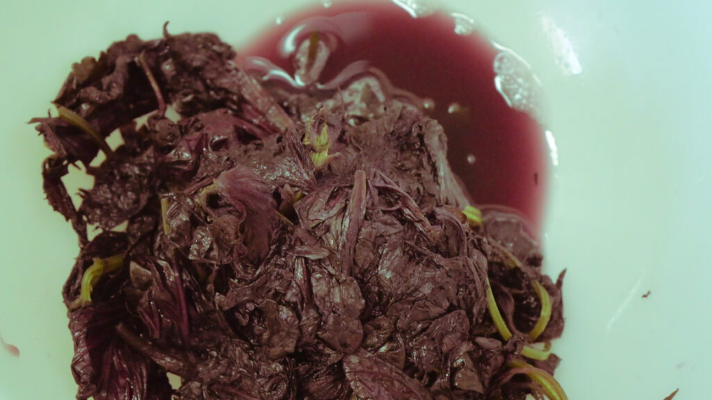 紫蘇を追加。2回目に仕込んだ梅には足りなかった。梅2Kgに紫蘇600g。覚えておこう。