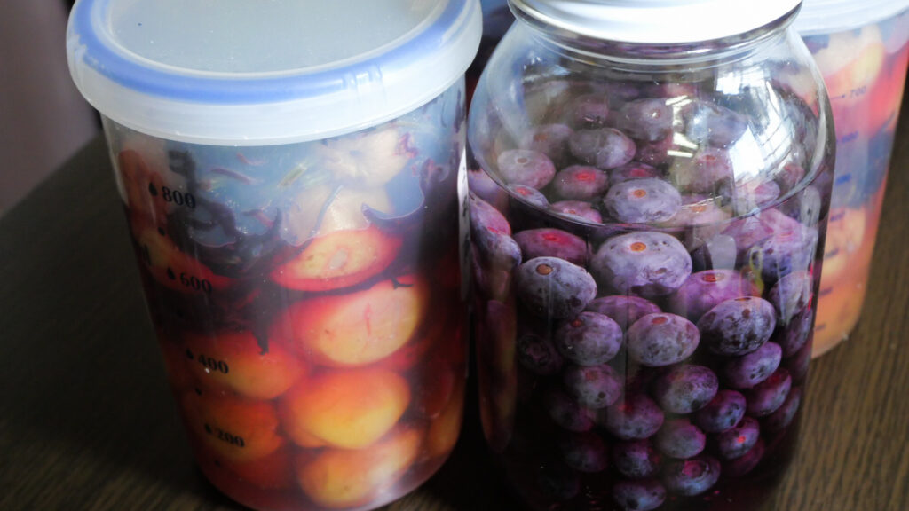 梅干し、梅酒、味噌、らっきょう酢、そして今年はブルーベリー酒も仕込んだ。