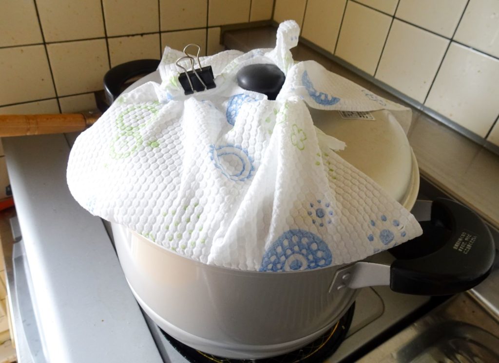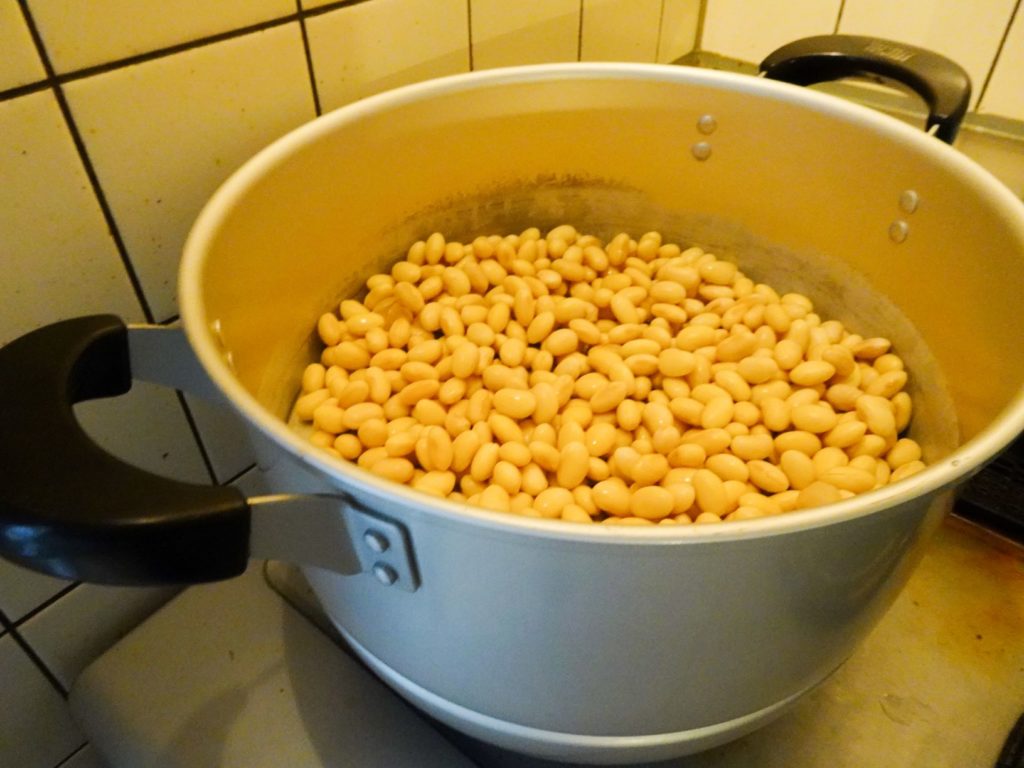 いつものように蒸して、蒸らして、蒸し大豆完成。