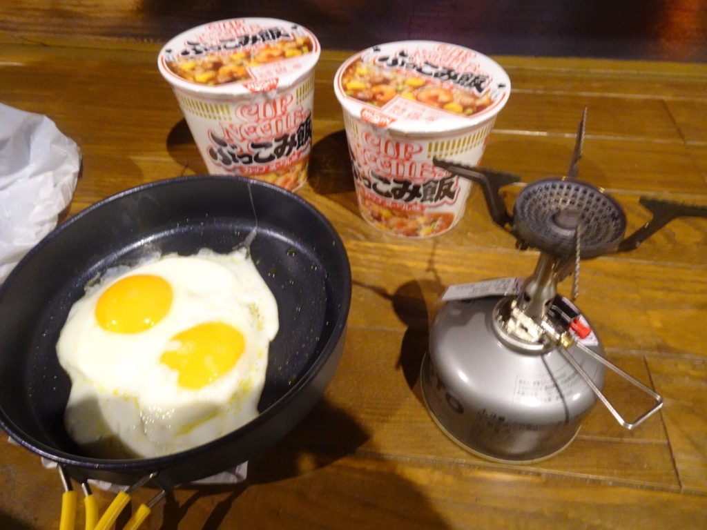 ぶっこみ飯にとろとろ半熟目玉焼きを投入して食べる。