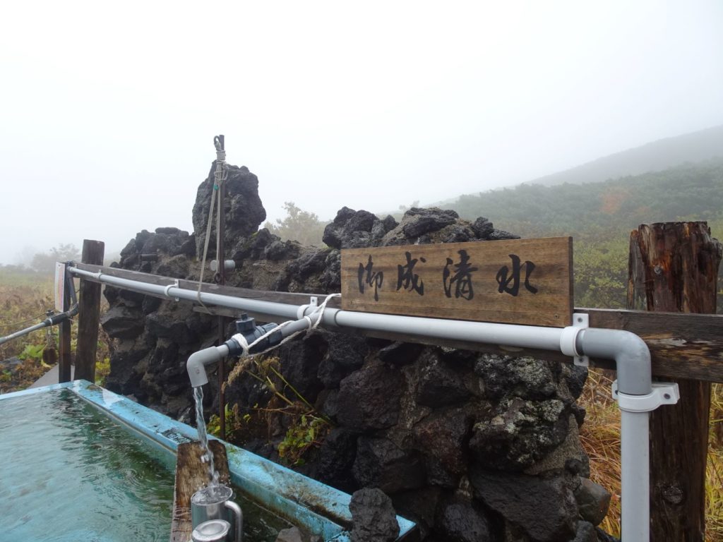 今年は水量が少ないようです。下山前に空いたペットボトルに詰めます。
