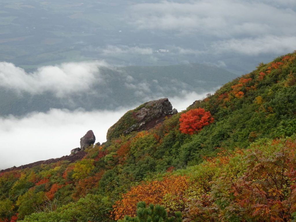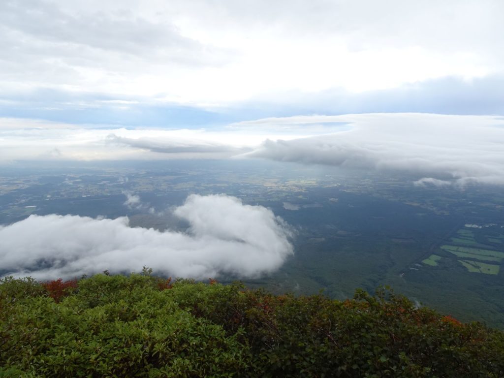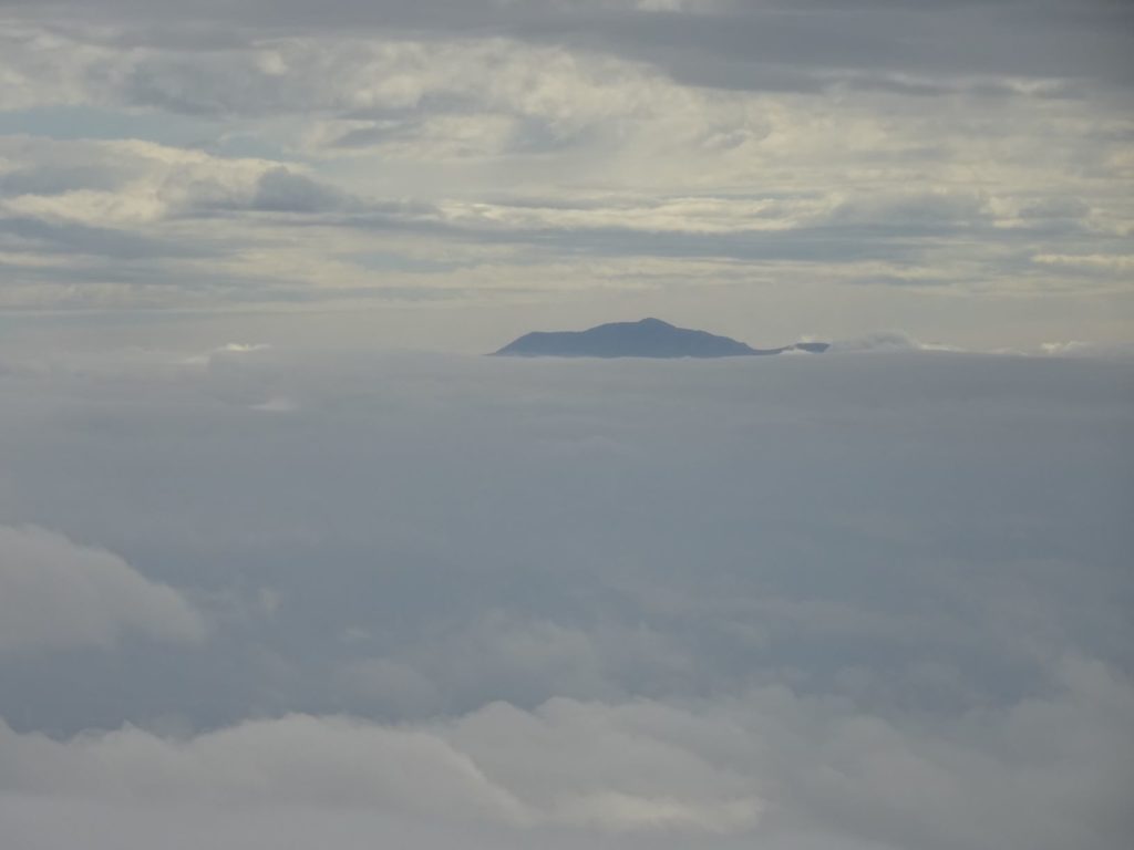 一面の雲の上にポッカリ、早池峰山。雨の中ほっこり。