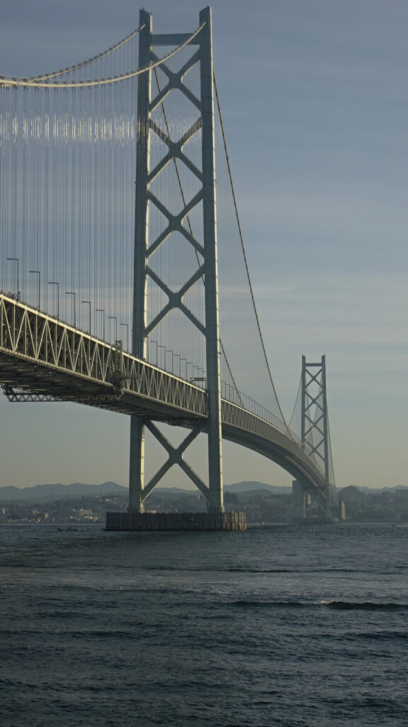 出発まえに、明石海峡大橋を淡路島から眺望。いいなあ。何回見てもいい。橋には希望がある。