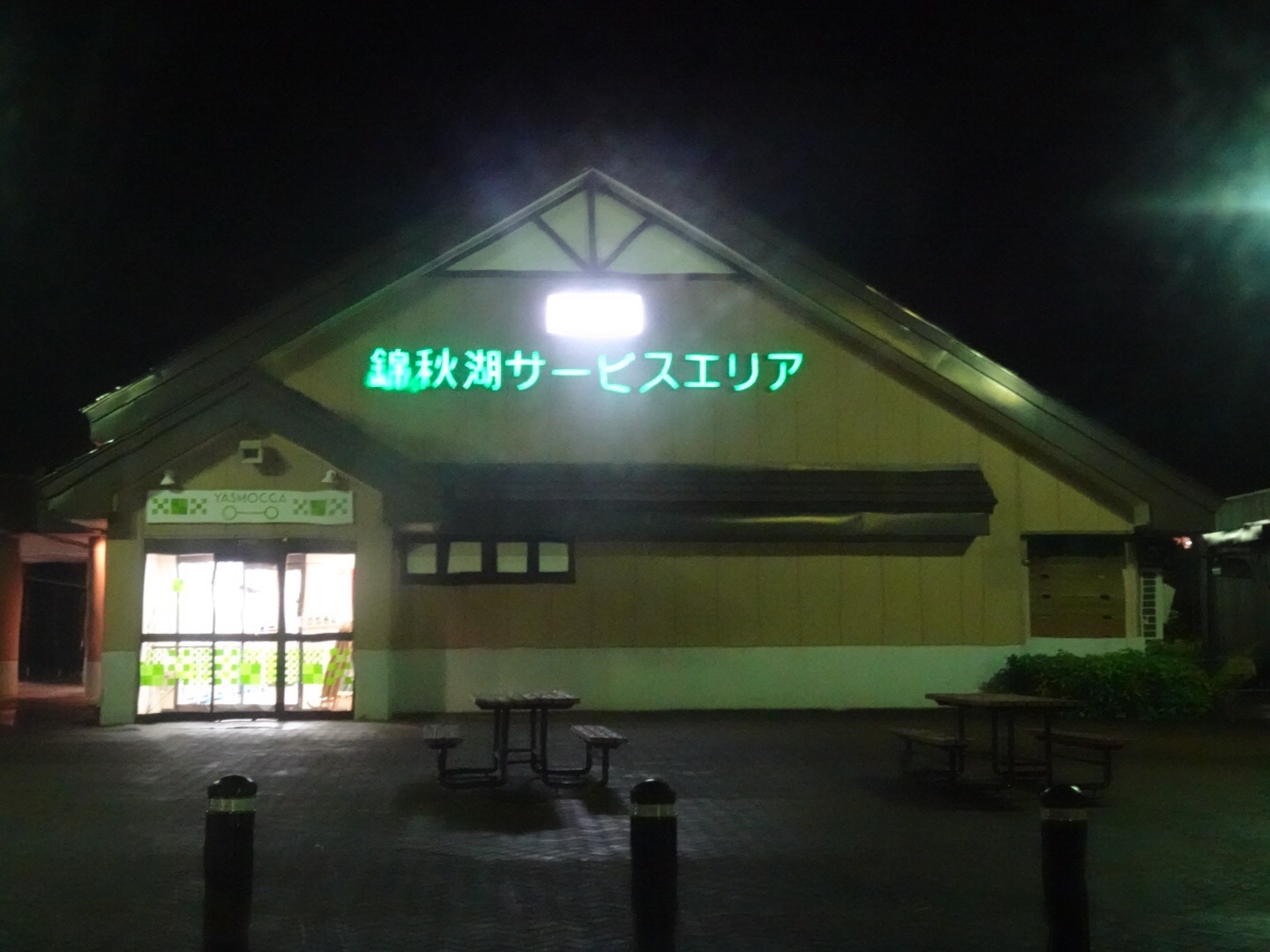 北上から、錦秋湖サービエリア。 風と雨が強くなってきた。