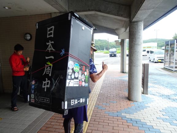 トイレから戻ると、えっ、大きな箱みたいなのを背負ったこれまた若者が。
