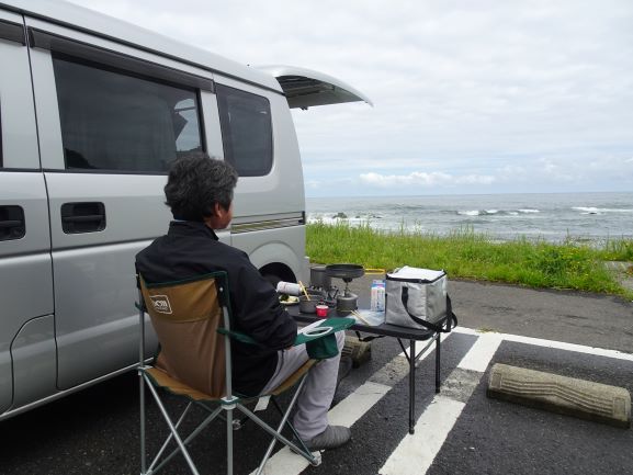 車中泊2日目。一日中晴れました。雲は多かったものの久々に太陽の日差しがあり、暑いくらい。