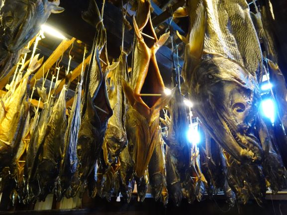 塩引き鮭。試食したら日本酒が恋しくなった。